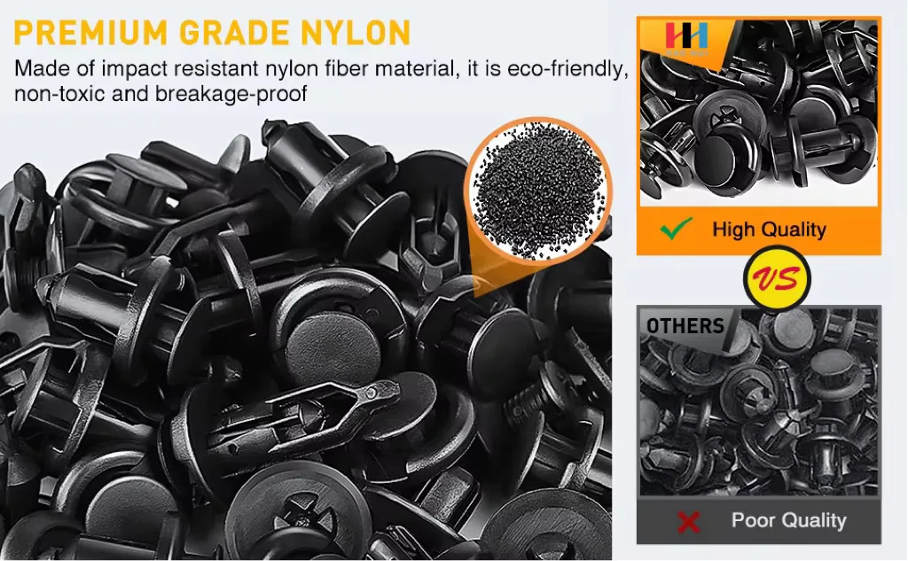 Kila klipu katika seti hii imetengenezwa kwa plastiki imara inayostahimili kuvaa, kuhakikisha uimara wa muda mrefu. Sahau kuhusu klipu dhaifu zinazovunjika harakaโ€”hizi zinadumu kwa muda mrefu na kulinda gari lako vyema.